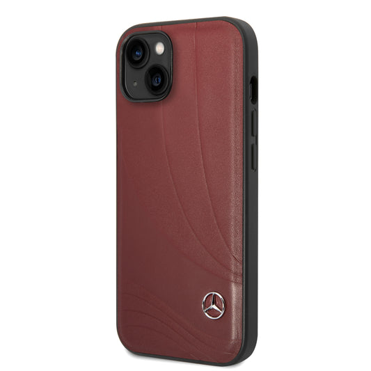 Case/Funda Mercedes Benz de Piel con Diseño de Olas Color Rojo para iPhone 14 Plus
