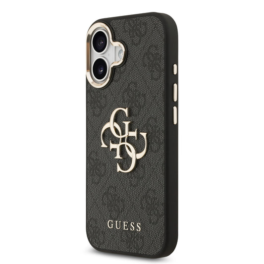 Funda Guess de Piel Negra con Logotipo Dorado Grande 4G para iPhone 17 - Case Original de Lujo