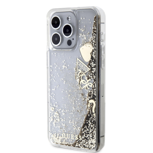 Case Guess Glitter Líquido con Charms para iPhone 15 Pro Dorado - Glamour y Protección