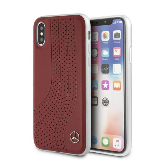 Case/Funda Mercedes Benz de Piel Roja con Diseños Arcos iPhone X/xs