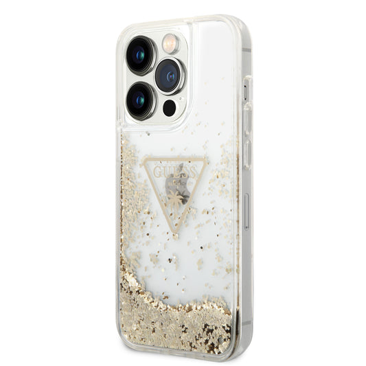Case Guess Brillantina Dorada Triángulo para iPhone 15 Pro | Elegancia y Protección Premium