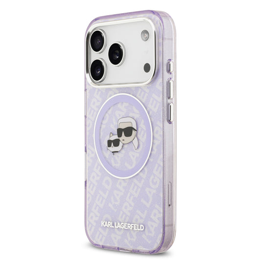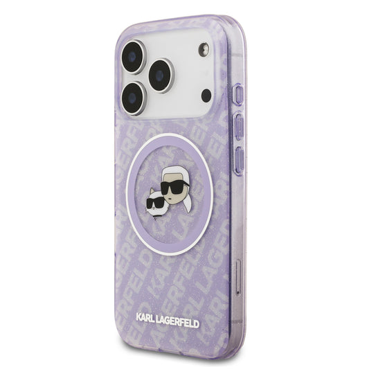 Funda Karl Lagerfeld MagSafe con Glitter y Logos de Karl & Choupette para iPhone 17 Pro Max - Morado | Case Original