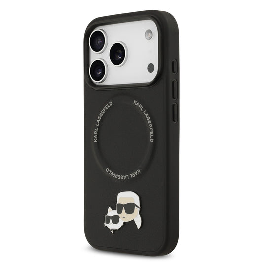 Funda Karl Lagerfeld MagSafe con Pins de Karl & Choupette para iPhone 17 Pro - Negro | Case Original de Lujo