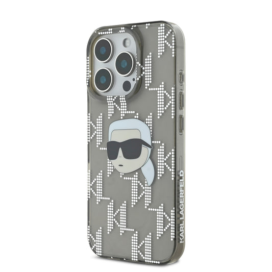 Case Karl Monograma Cabeza K&C para iPhone 15 Pro - Negro Elegante y Moderno