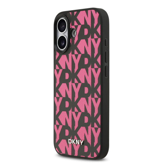 Funda DKNY MagSafe de Piel Granulada con Patrón de Cuadrícula para iPhone 17 - Rosa | Case Original de Lujo