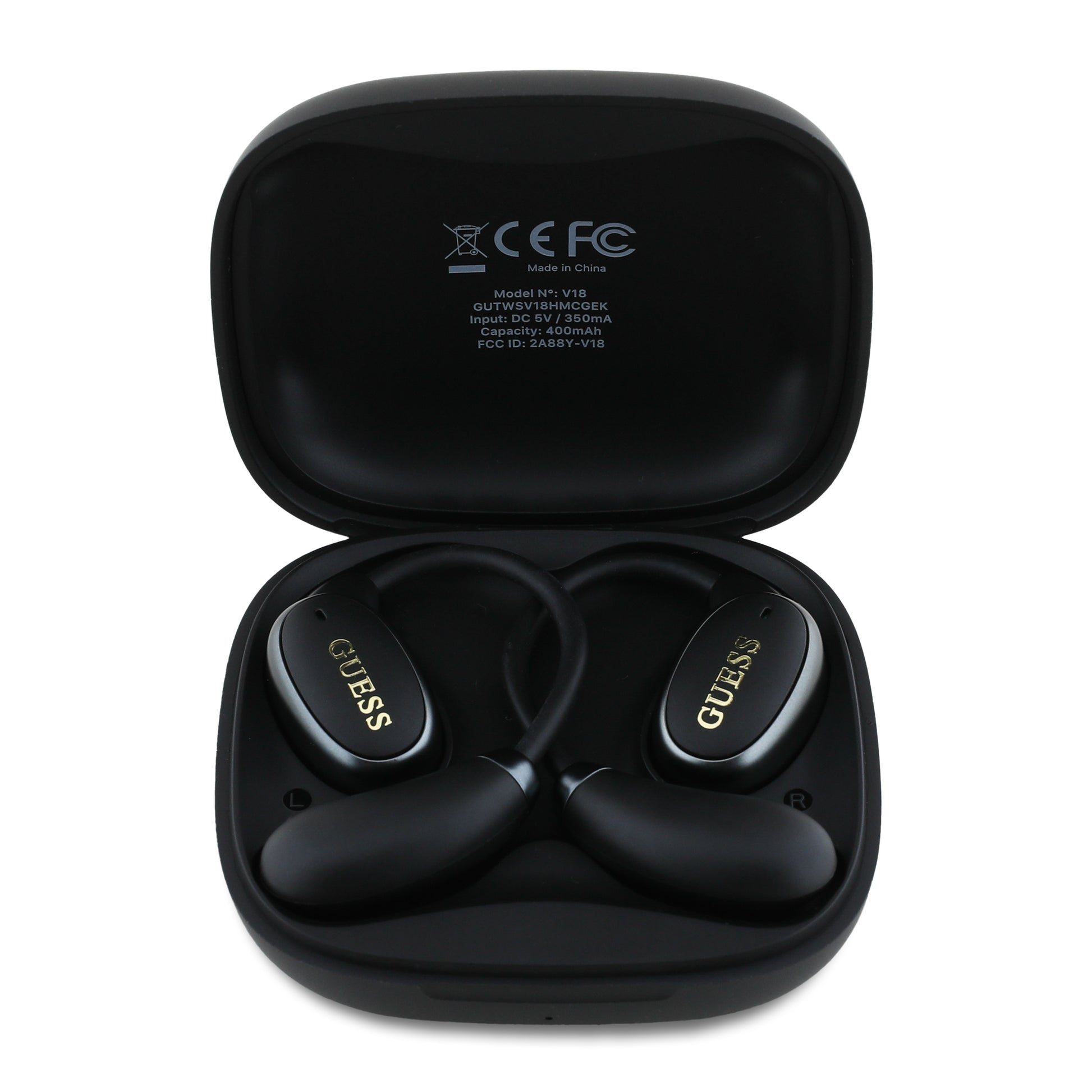 Su acabado negro clásico con el distintivo logo Guess les da un look premium que combina con cualquier outfit. Gracias a la tecnología inalámbrica OWS, ofrecen una conexión estable, gran claridad de audio y una experiencia práctica tanto en tu día a día como en entrenamientos, trabajo o viajes.