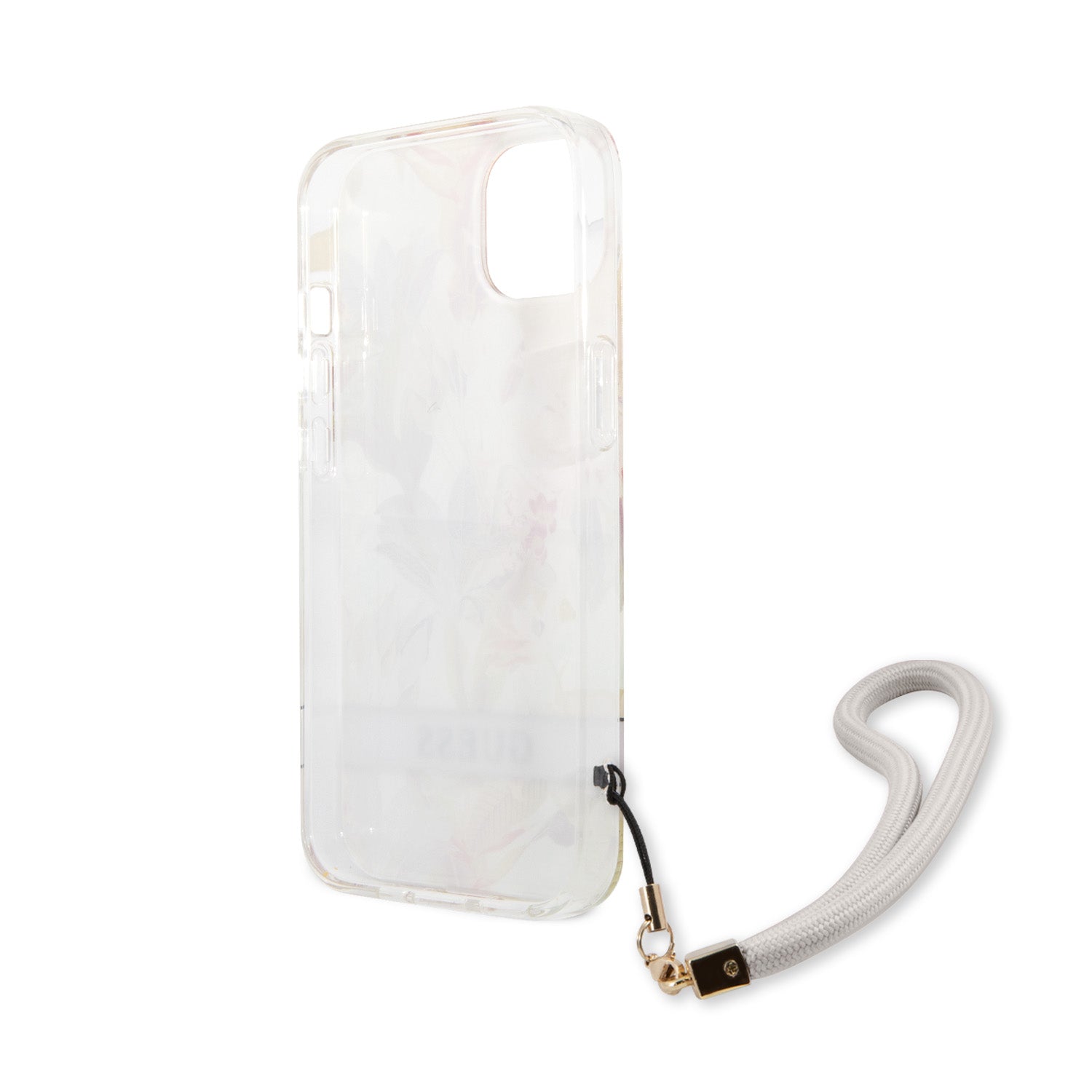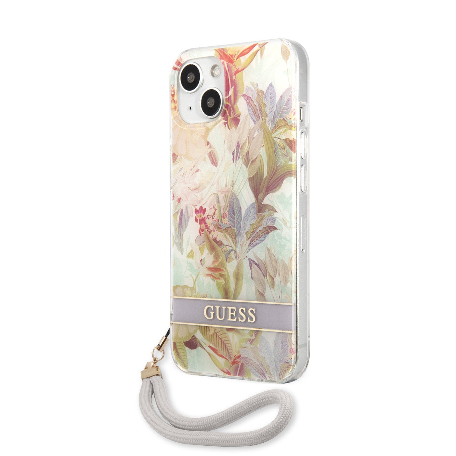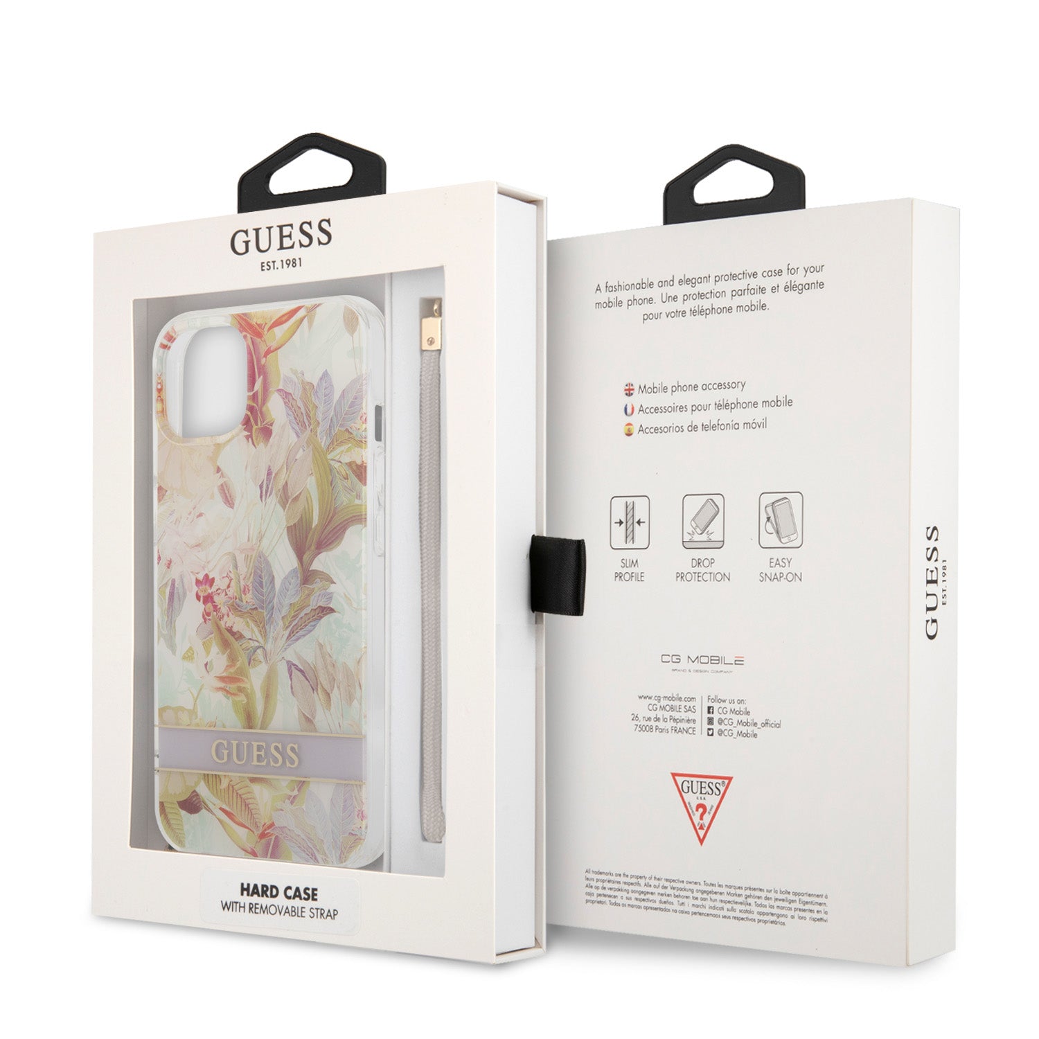 Dale un toque femenino, moderno y elegante a tu iPhone 14 Plus con la Case Guess Flores con Brillos en color lila, una funda premium que combina detalles florales con efectos de glitter que resaltan con la luz.