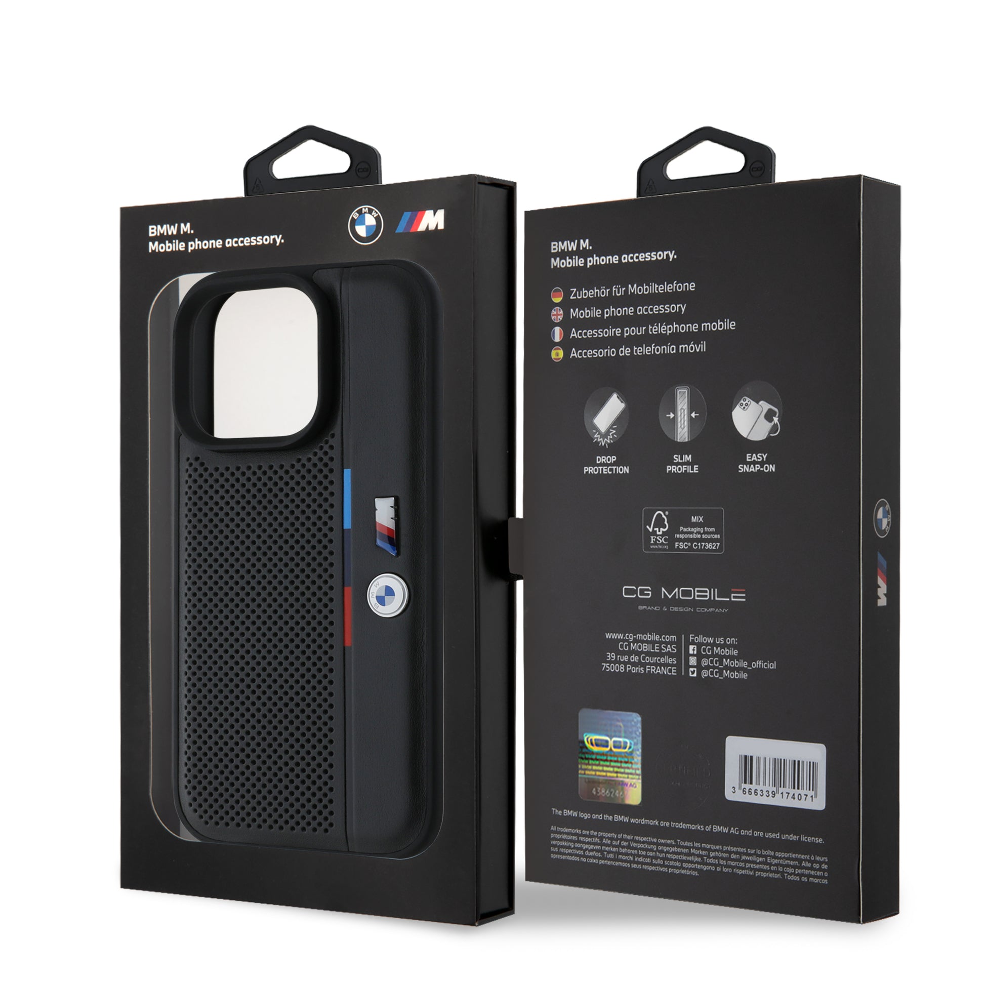 Lleva la sofisticación de la pista a tu smartphone más avanzado. Esta funda original BMW en color negro ha sido diseñada específicamente para el iPhone 16 Pro, fusionando la elegancia del cuero con un diseño perforado que emula los interiores deportivos de la marca bávara. Su estética se complementa con una línea deportiva discreta que resalta el ADN de BMW M.