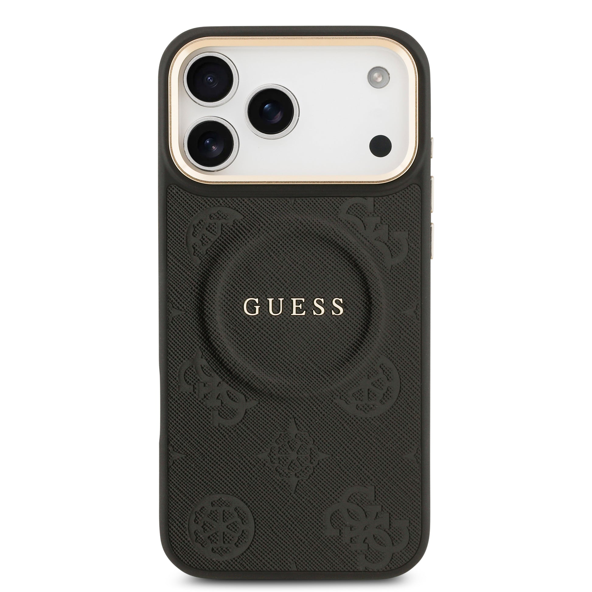 Eleva tu smartphone al nivel de las pasarelas. Esta funda original de Guess en color negro es el accesorio definitivo para el iPhone 17 Pro Max. Confeccionada en piel sintética (PU) de alta calidad, destaca por su elegante patrón de peonías grabadas en calor, una textura que combina el lujo clásico de la marca con una durabilidad excepcional.