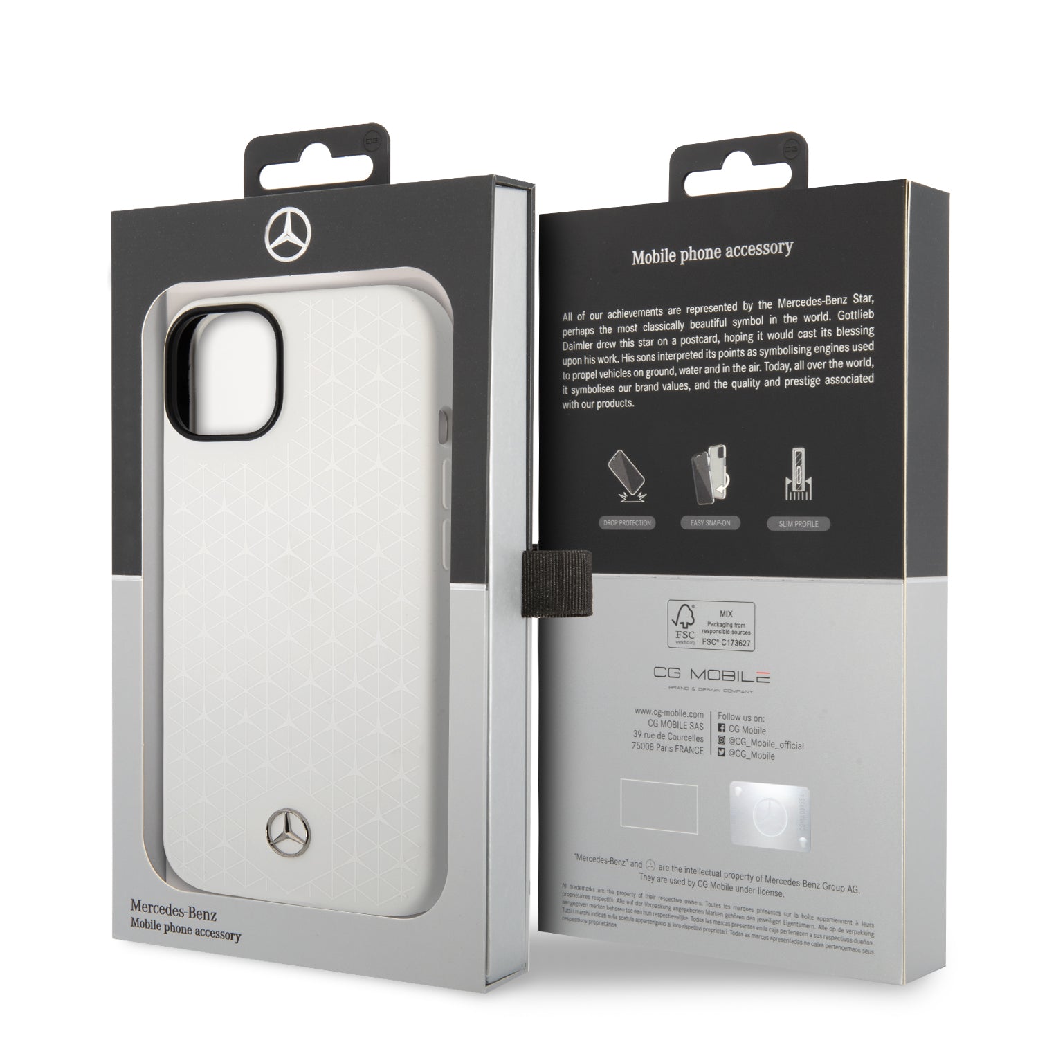 Su diseño exclusivo de estrellas Mercedes-Benz resalta el estilo icónico de la marca, mientras que el color blanco aporta un look limpio, moderno y sofisticado. Diseñada específicamente para iPhone 14, garantiza un ajuste preciso y acceso total a botones, cámara y puertos.