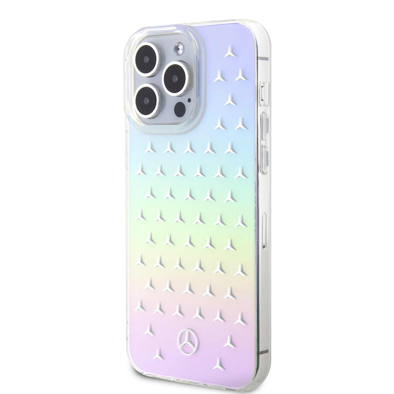La Funda Mercedes-Benz con Estrellas Tornasol para iPhone 15 Pro Max combina diseño exclusivo, elegancia y protección en un solo accesorio. Su acabado tornasol refleja diferentes tonos según la luz, aportando un estilo moderno y llamativo sin perder el sello premium de Mercedes-Benz.